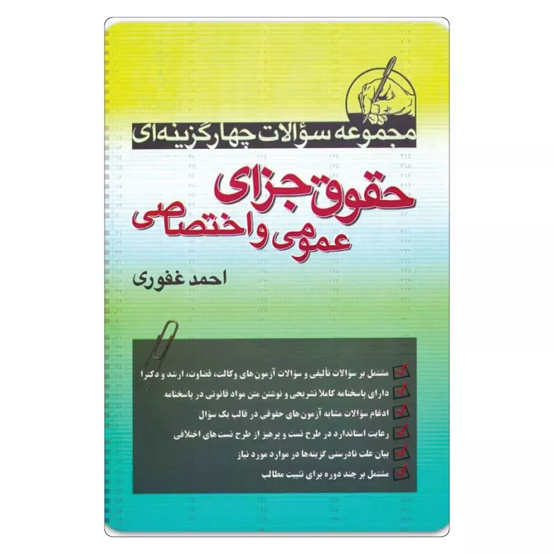 خرید کتاب تست جزا احمد غفوری، اگر داوطلب آزمونهای حقوقی هستید، حتماً میدانید که درس حقوق جزا با ضریبهای تعیینکننده خود، نقش کلیدی در قبولی شما ایفا میکند. کتاب تست جزا احمد غفوری، نامی آشنا و معتبر برای تمامی متقاضیان آزمون وکالت، قضاوت و ارشد است. این کتاب با تسلط بینظیر بر مواد قانونی و رویکردی کاملاً آزمونی، پلی میان دانش نظری و مهارت تستزنی شما ایجاد میکند. در فروشگاه اندیشه بیگی، آخرین ویرایش این اثر ارزشمند را با بهروزرسانیهای ویژه 1404 برای شما فراهم کردهایم.